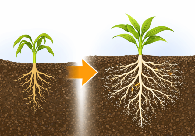 発酵過程で生成された酵素類・機酸類などの成分が、作物の根の働きを直接活性化し、健全な生育を促します。